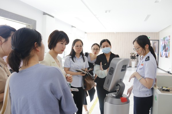 学习团一行实地参观了溪口税务所“零窗”智慧办税厅巾帼文明岗的创岗环境,近距离感受浓厚的创建氛围和优质的服务内容。全国巾帼文明岗溪口税务所“零窗”智慧办税厅坚持以工作促创建,以创建带工作,并设立了“青莲岗”作为巾帼文明岗的服务特色和标志。“青莲岗”岗员围绕匠心锻造“炼”的品质、创新探索“莲”的服务、温馨凝聚“联”的力量三方面和大家分享了组织管理、制度建设、岗位建功、岗位风采、亮点特色等做法,并就创岗思路、创岗措施、创岗目标和岗员提升发展等多个方面,进行了面对面的交流与探讨。