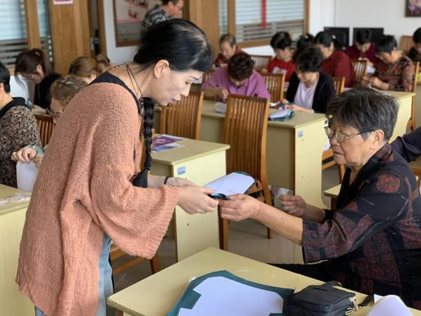 “想要做出别致的口金包,不仅要有好的裁剪与创意,缝制也是至关重要的。”社区还举行“老少同乐,情满重阳”口金包制作活动,邀请“渔家香囊”非遗文化传承人现场授课。小朋友和老人们在老师的指导和带领下,穿针引线、细心缝制、快乐制作,忙的不亦乐乎。一个半小时后,一个个花色各异、造型独特手工包就络绎成型,活动现场笑语不断、欢声连连。