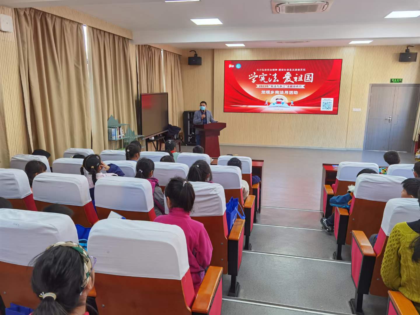 | 12月7日,龙观乡妇联协同龙观司法所在龙观中心学校开展了宪法周宣传、宪法月宣传活动,宣传贯彻习近平法治思想,邀请海曙区“罗德法律服务中心”成员、浙江金汉律师事务所律师潘玉健授课。 潘玉健律师以《学宪法、讲宪法》为主题面向小学四年级学生作普法讲座,以生动直观的金字塔模型为例科普宪法的法律效力、法律地位。现场设置情景模拟、知识竞赛环节,让学生在入学、向学校提出建议、搬进保障性住房等情景中深刻认识宪法规定的公民权利义务。学生们积极踊跃举手回答,学法热情高涨,在问题抢答中进一步弘扬宪法精神,增强法治意识。 通过法治宣传进行学校,组织学生观看2023年法治宁波建设宣传动画,为少年儿童进行了法治教育,加深学生对当地法治工作的理解,切实将普法守法之风吹进了校园。