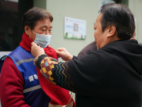12月26日,在得知今年几波寒潮陆续来袭的消息后,段塘街道雄镇社区“锦绣衣香”共富工坊的10位巧绣娘们首先想到了在各小区坚守岗位的“守桶人”——垃圾分类督导员,近段时间督导工作因天气恶劣的原因更加艰苦。一周里,巧绣娘们加急编制起一条条爱心围巾和一顶顶帽子,承载着关怀与温暖的围巾和帽子,全部送到了垃圾分类督导员们的手中。