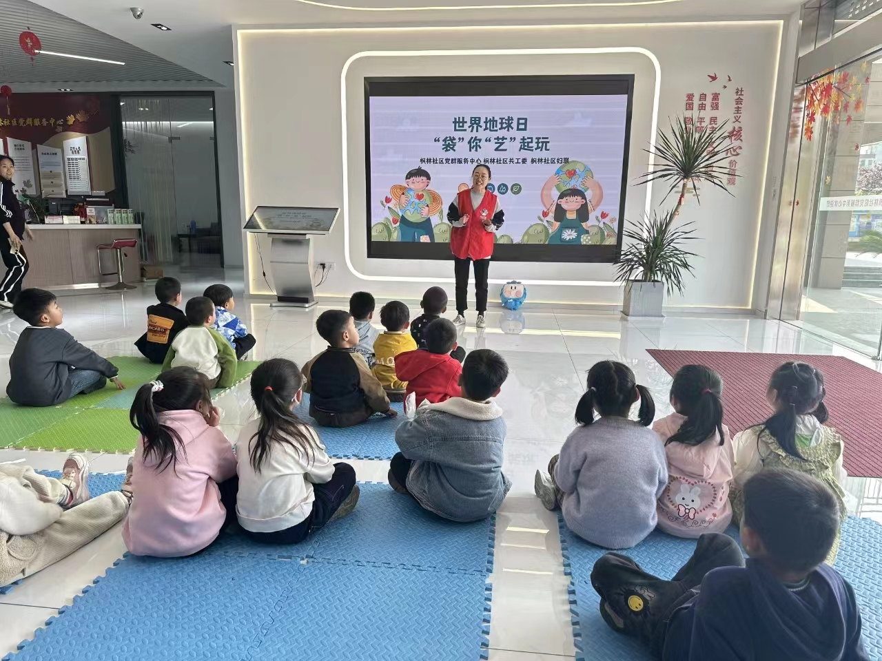 活动伊始,枫林社区妇联委员杨微微,以她的专业知识和热情,为孩子们详细介绍了世界地球日的由来和意义。她的话语中充满了对地球的热爱和对未来的期待,她希望通过这样的活动,能够唤起小朋友们爱护地球、保护家园的意识,共同建设绿色、环保、健康的美丽家园。 杨微微告诉孩子们:“保护地球,从来不是一件多么遥不可及的事,更不会是纸上谈兵。”她的话语犹如一颗种子,深深植入孩子们的心田。她鼓励孩子们从身边的小事做起,积极参与环保行动,为地球的环境保护贡献一份力量。