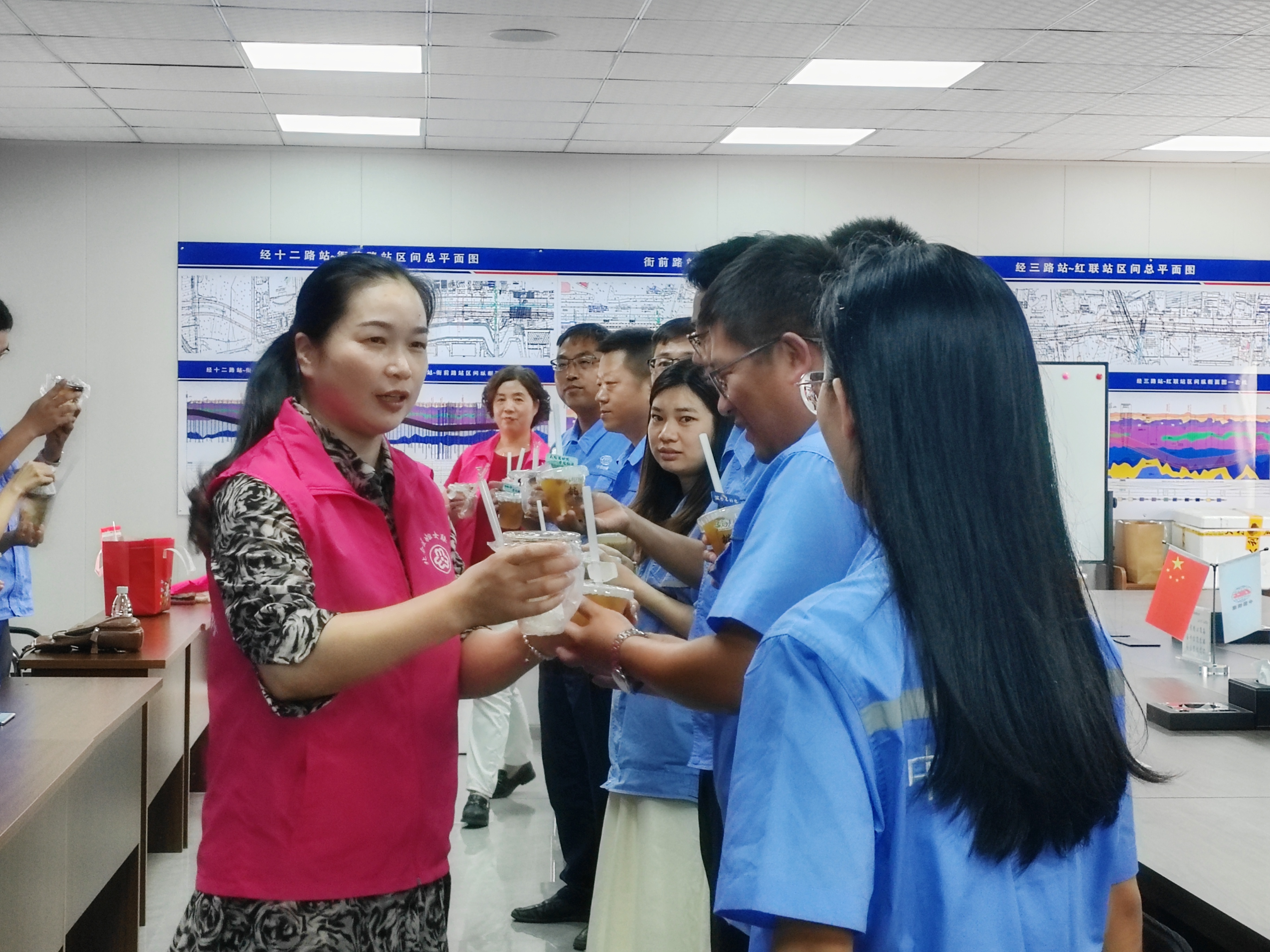 活动当天,巧妇们早早地开始忙碌,精心准备各种消暑食品和饮品,她们用传统的手工技艺,制作出清凉解暑的绿豆汤、红枣银耳汤、冰镇柠檬水和木莲冻等。每一份食品都融入了巧妇们的深情厚意,寄托着对一线工人们的敬意和感激之情。 午后时分,烈日当空,巧妇们将准备好的食物装车,前往中铁十九局地铁六号线的建设工地,工人们看到巧妇们的到来,都感到非常惊喜和感动。他们接过巧妇们送上的清凉食品,心中满是温暖,收到这份特别的关怀,工人们感到非常温暖和感动。他们纷纷表示,这份清凉不仅消解了身体上的暑热,更温暖了他们的心。