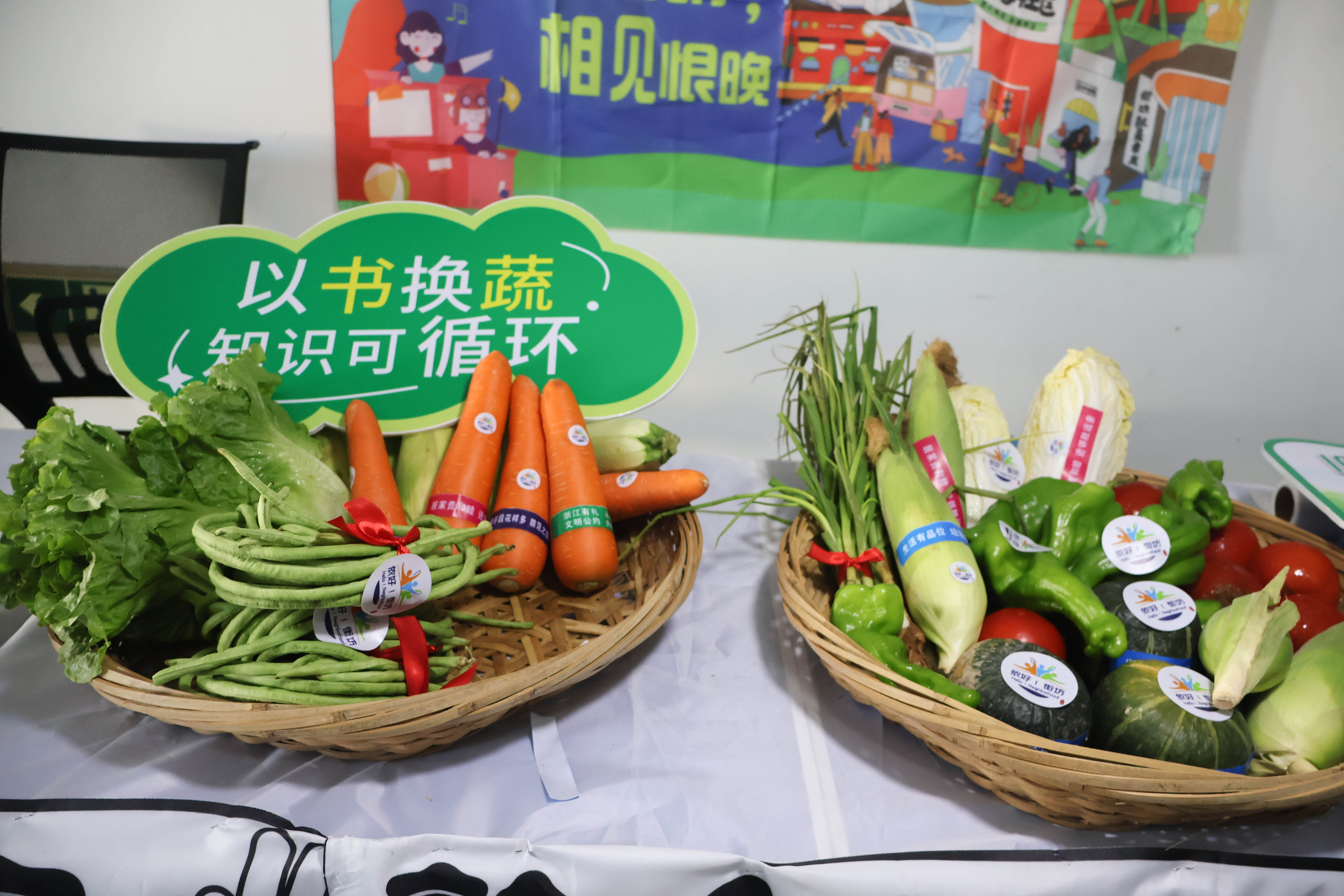 活动现场,居民们纷纷拿出自己闲置的旧书籍,换取来自迎春社区对接的贫困村村民种植的新鲜蔬菜。馥郁书香邂逅蔬菜清香,这种“以旧书换新蔬”的公益碰撞,不仅为菜农们增加了收入,也为社区的捐书活动注入了新的活力,每一本书的捐出,都意味着一份爱心的传递;每一份蔬菜的换取,都承载着对农户的深切关怀。通过活动所得图书都被放入社区的“流金岁月”共享书屋里,供更多有需要的居民阅读,让闲置书籍发挥最大价值。