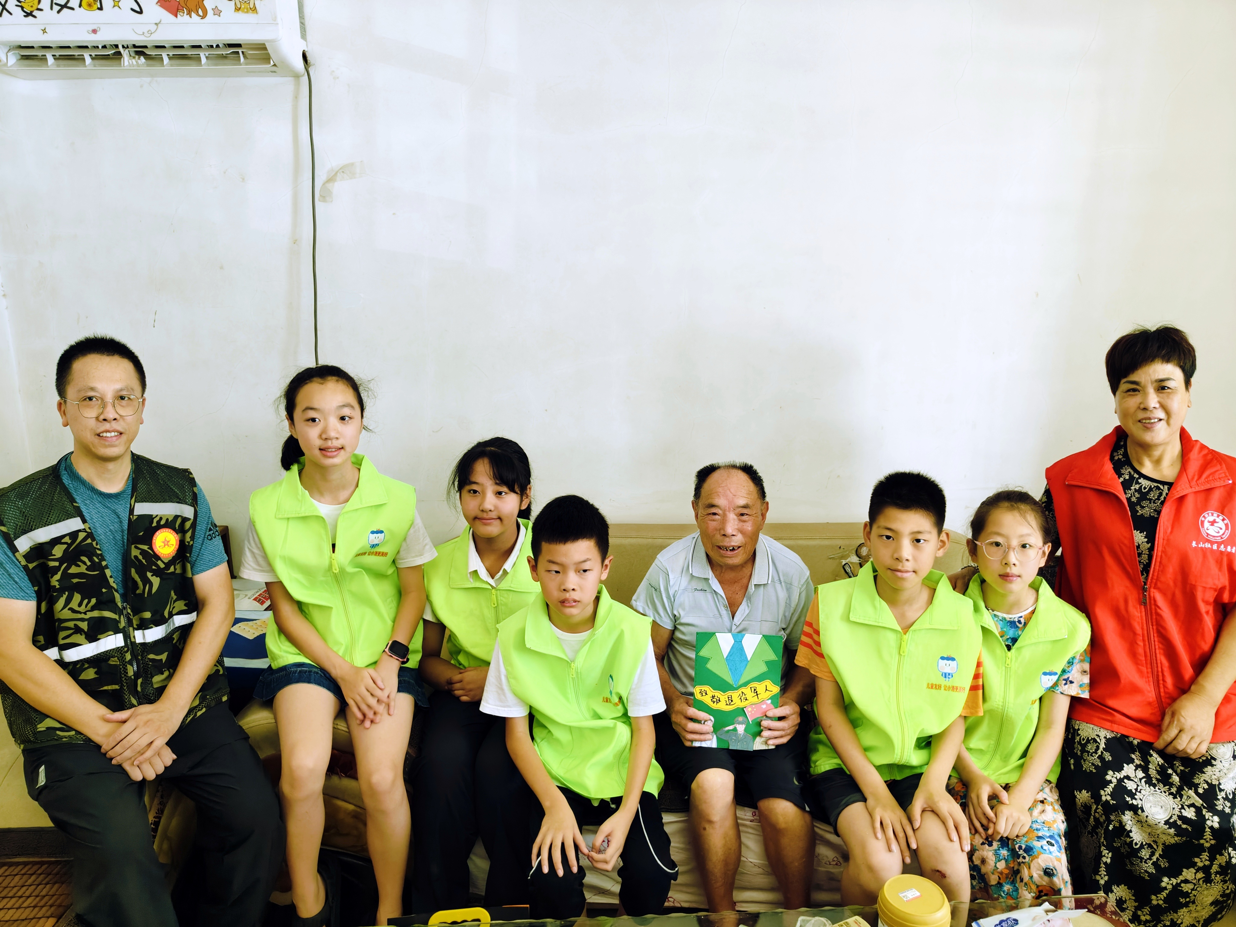 “倪爷爷好,我们来看看您,最近身体还好吗?”炎炎夏日,“暑”不完的关心由一双双稚嫩的小手传递到了退伍老兵的手中。八旬退伍老兵倪益忠开心地翻出了收藏多年的肩章、帽徽跟孩子们娓娓诉说起它们承载的峥嵘岁月,摸着肩章帽徽,听着老兵讲述,肩章留下的岁月痕迹触动着小小少年的爱国之心,钦佩之情油然而生。卸下肩章,弥久难忘,老兵拿着贺卡,看到这么多可爱的孩子,内心也倍感惊喜。“我很荣幸能参加这次活动,是老兵爷爷用青春守护了我们的家园,我以后一定会努力学习,向老兵致敬!”小小志愿者潘雅萱说道。