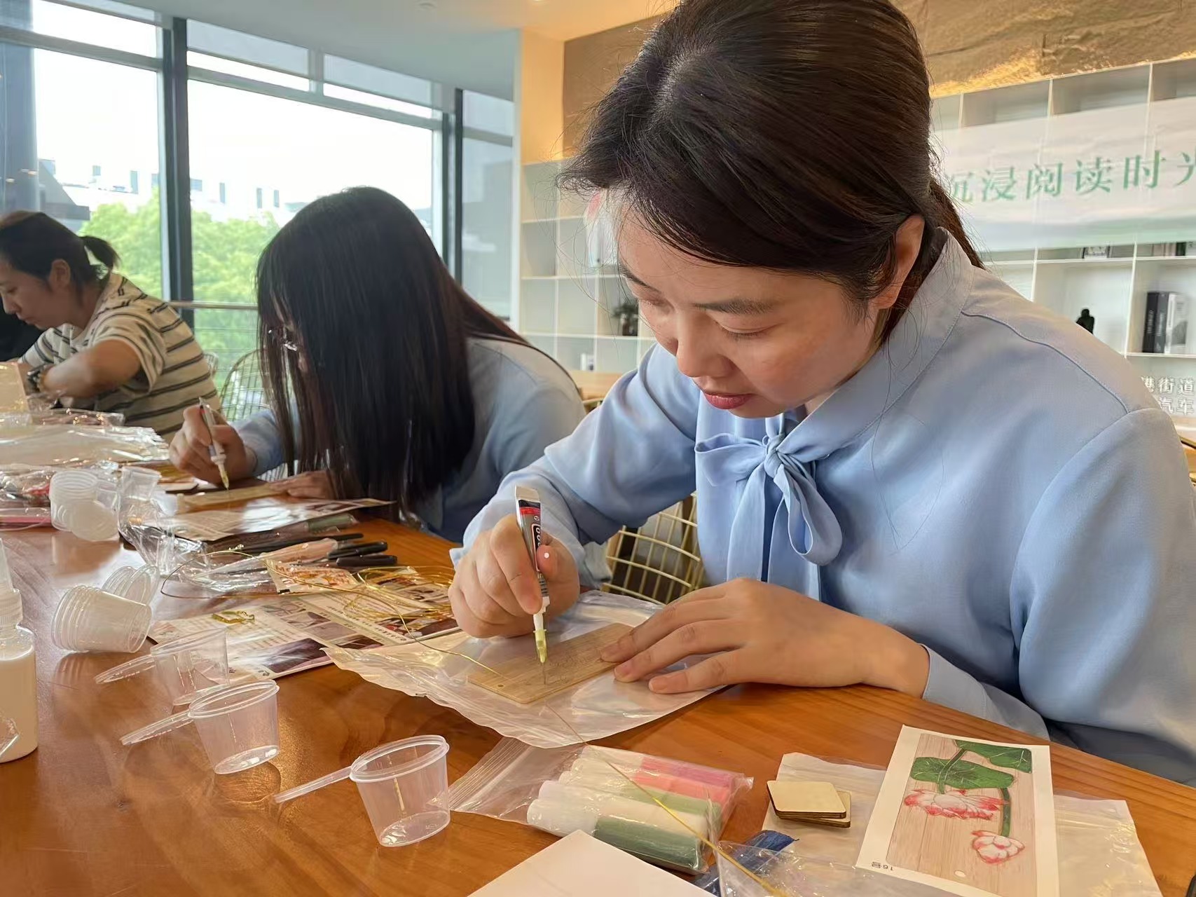 为营造浓厚阅读氛围,倡导终身学习理念,4月22日下午,小港街道谢墅社区工会联合会、谢墅妇联携手小港街道滨江汽车城商圈工会联合会邀请辖区新业态女性劳动者开展主题为“共沐书香 阅见世界”沉浸阅读时光活动,共享阅读之美。 活动伊始,大家热情投入到创意书签DIY环节。现场精心准备的掐丝书签制作包,激发了大家的创作灵感。在“我最爱的一本书”主题引导下,大家充分发挥想象力,一个个独具匠心的书签在手中诞生。这些书签不仅承载着职工们对书籍的热爱,更成为阅读时光里独特的印记。