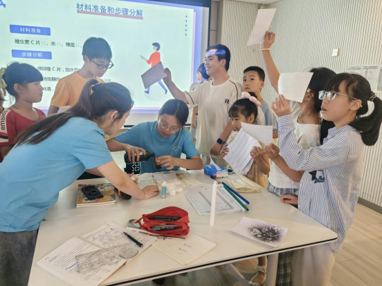 “维C还能让什么显形?”“变色的水能变回来吗?”“家里哪些东西能做实验?”实验结束后,孩子们依依不舍地围绕在导师们身边,纷纷提出各种充满想象力的问题。 渡头董社区妇儿驿站负责人表示:“本活动是我们立足阵地、精准对接青少年需求的一次成功实践。通过引入高校优质资源,以趣味科学实验为载体,破除科学的神秘感,激发孩子们的好奇心和探索欲,引导他们崇尚科学、热爱思考,这正是新时代文明实践培育时代新人的重要内涵。” |
